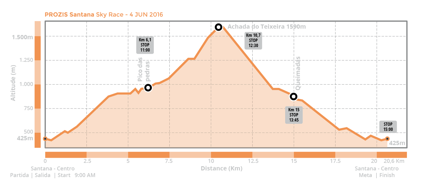 Uma experiência de Skyrunning para subir uma montanha de belezas naturais do concelho de Santana, entre os 400 e os 1600 metros de altitude. O desafio terá como palco principal um terreno de montanha, com perspetiva de paisagens grandiosas, com a subida ao ponto mais alto do percurso, na Achada do Teixeira, passagens por áreas agrícolas e pela luxuriosa floresta Laurissilva, património mundial natural da UNESCO, das Queimadas ao Pico das Pedras. Pisos técnicos e diversos, subidas e descidas acentuadas completam uma proposta repleta de atrativos que contribuirão para a superação de uma prova moderada, com partida e chegada junto à Câmara Municipal de Santana!